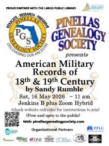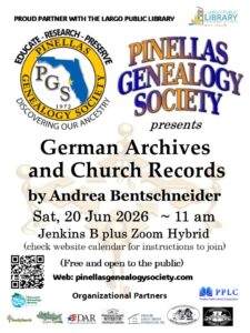 For more information please go to our calendar PinellasGenealogySociety.com/calendar