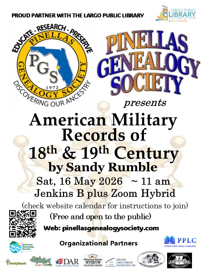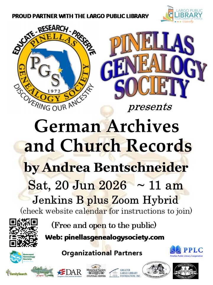 GREETINGS And Welcome to the Pinellas Genealogy Society !